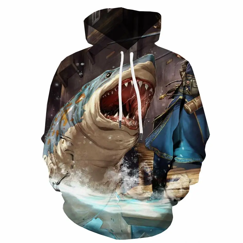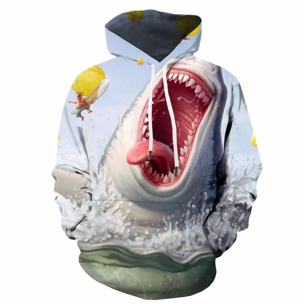 Толстовка мужская с 3D-принтом рыбы, свитшот с капюшоном в стиле хи...