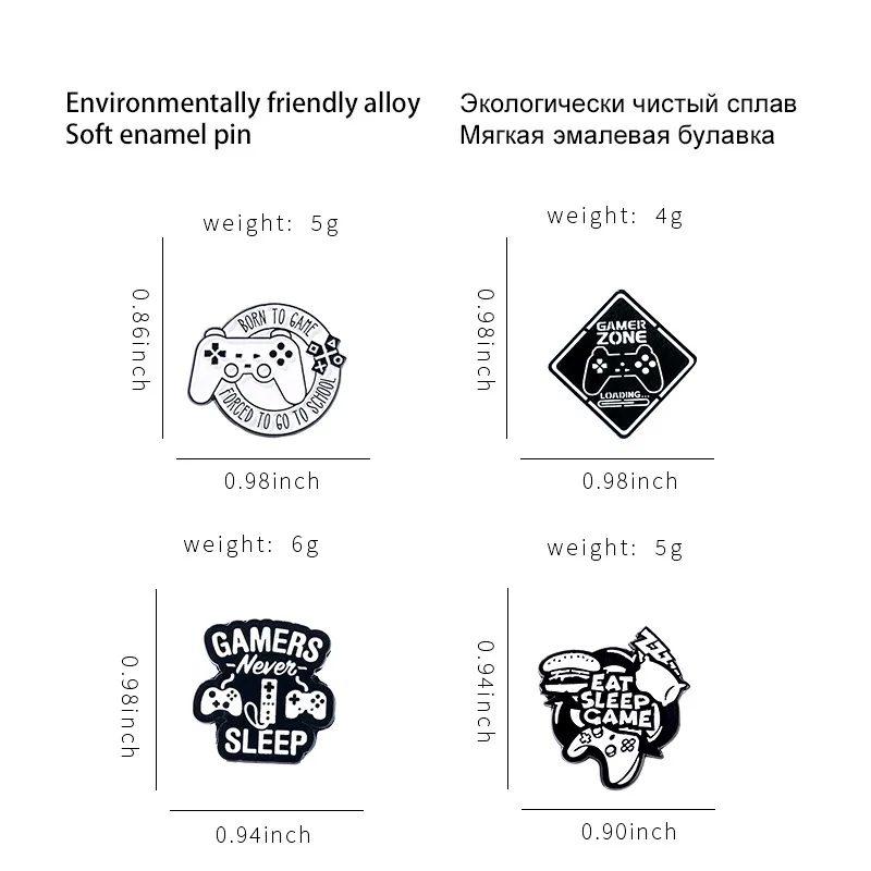 Изысканные броши для геймеров, черно-белые эмалированные заколки дл...