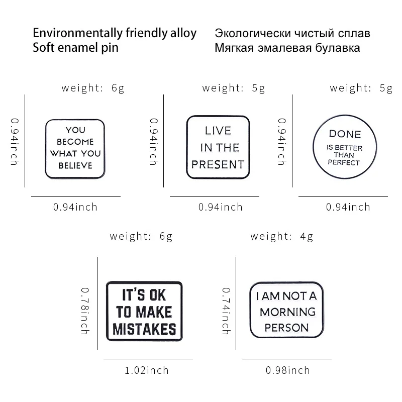 Мотивирующая эмалированная булавка с мотивационными цитатами, метал...