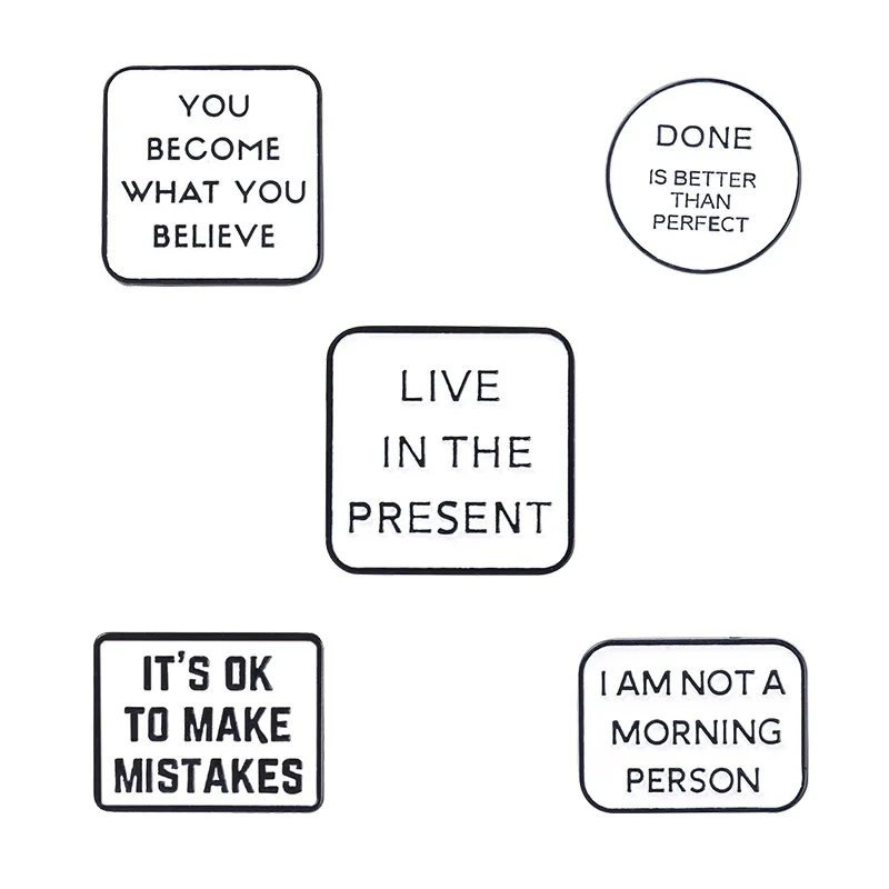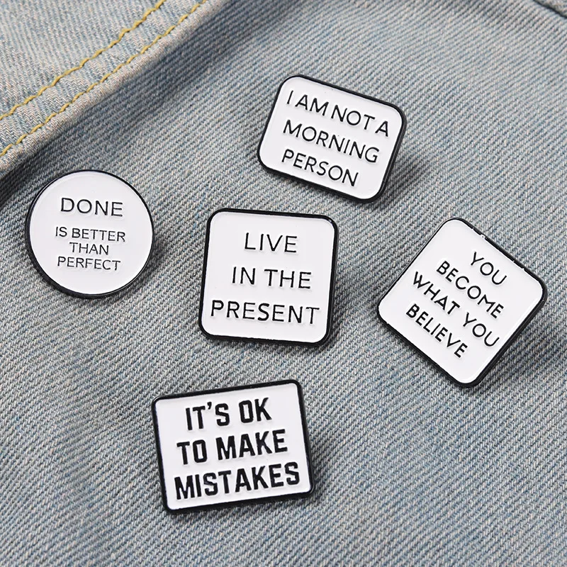 Вдохновляющие эмалевые булавки с цитатами, Готово лучше, чем префек...