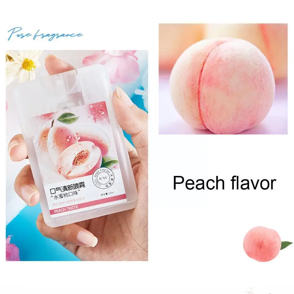 Освежающий спрей с фруктовым дыханием, 20 мл, лечение запаха ледяной мяты, черной смородины, освежитель галитоза, жидкость для ухода за полостью рта с персиком M2w2