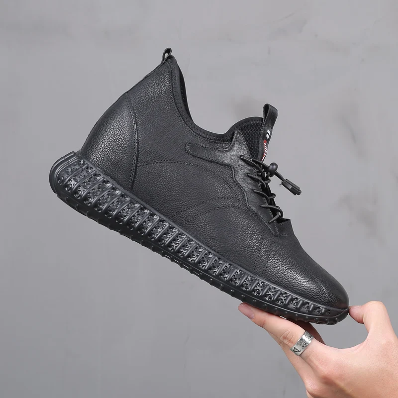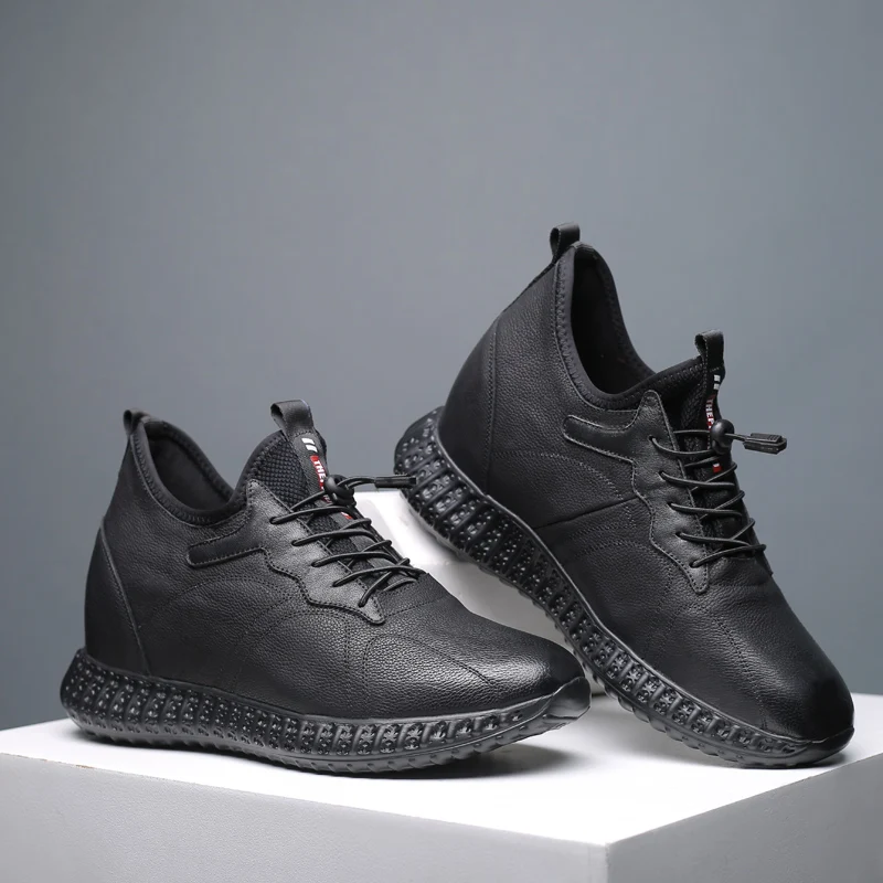 Мужские туфли из натуральной кожи, удобная обувь для увеличения роста, экспресс повышение высоты, 10 см, черные, повседневные