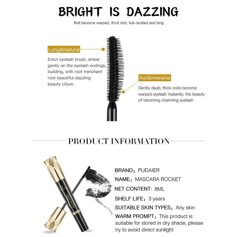 Тушь Pudaier для ресниц Rocket Magnum Crown, тушь для ресниц, Гламурная водостойкая 4d Тушь для ресниц с эффектом растушевки, длинная тушь C8u9