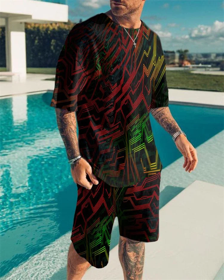 Футболка и шорты мужские с 3D-принтом, спортивная одежда с круглым ...