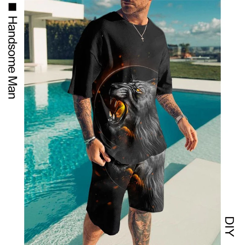 Костюм спортивный мужской с 3D-принтом короля льва, футболка и шорт...
