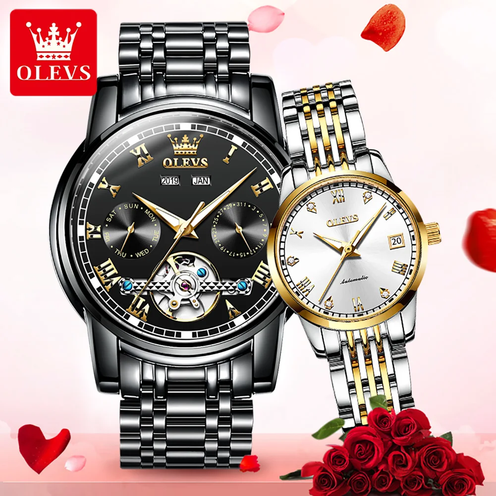 Часы OLEVS мужские, женские, механические, водонепроницаемые, часы с бриллиантами