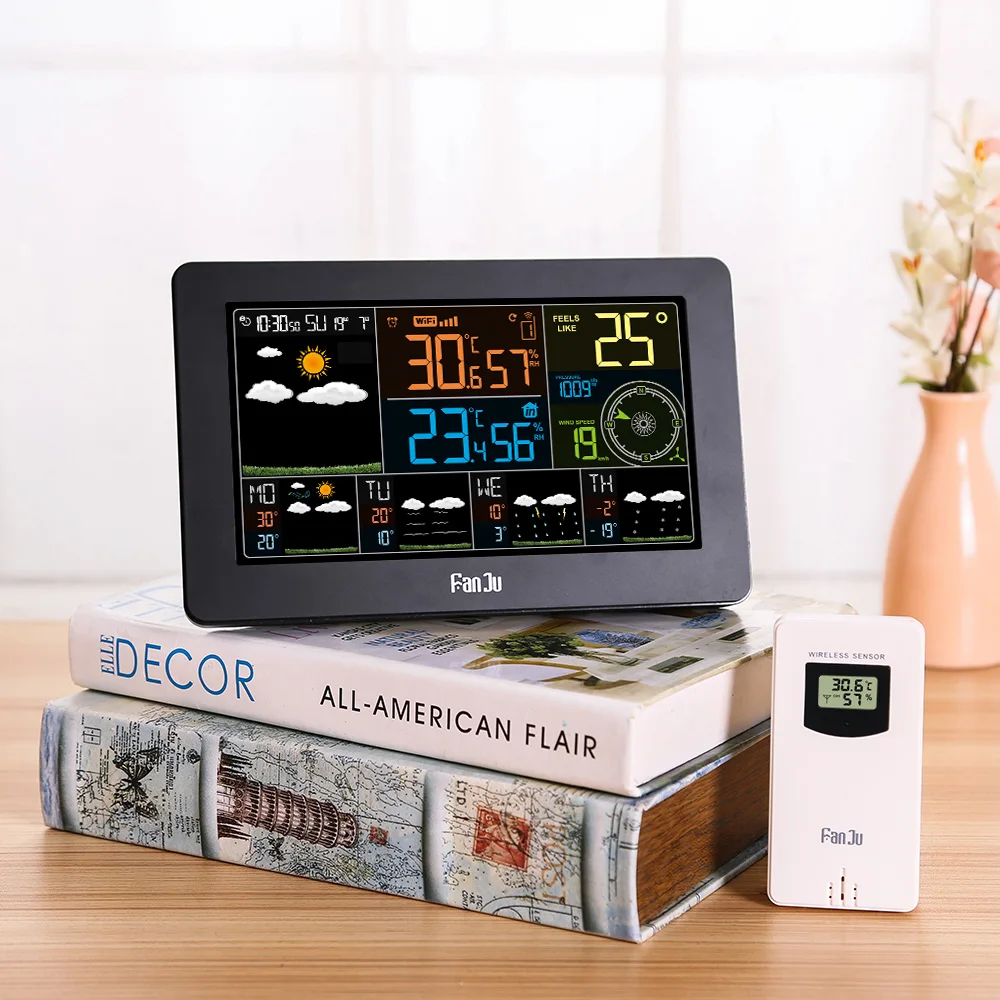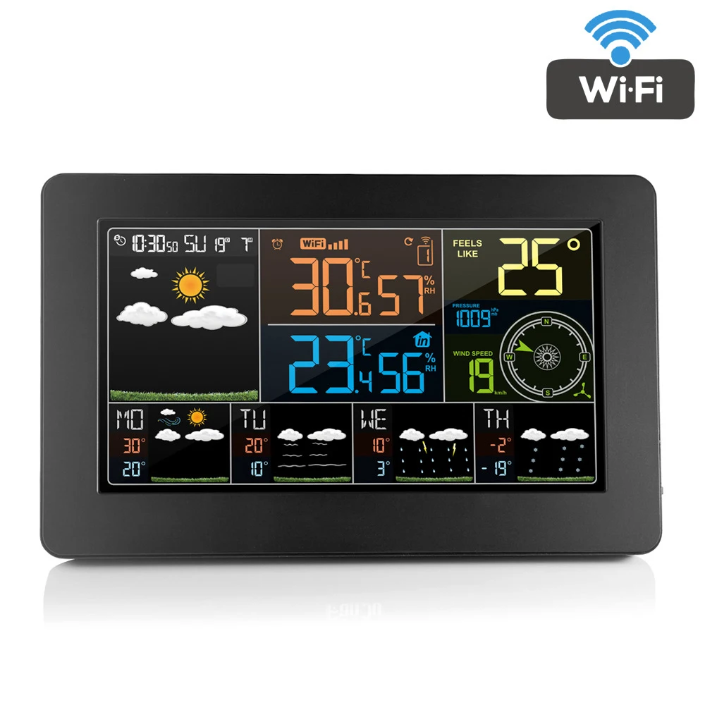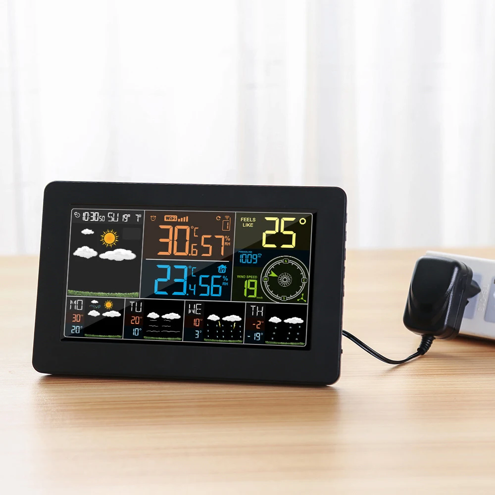 Часы с Wi-Fi, цифровые часы с прогнозом погоды и влажности, с беспроводным датчиком