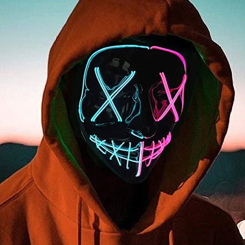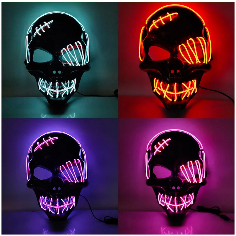 Новинка 2021, страшная светодиодная неоновая светильник ка на Хэллоуин, светящаяся ужасная маска для лица, маска для бара, вечеринки, дома с привидениями, маскарада, косплея, маски для костюма