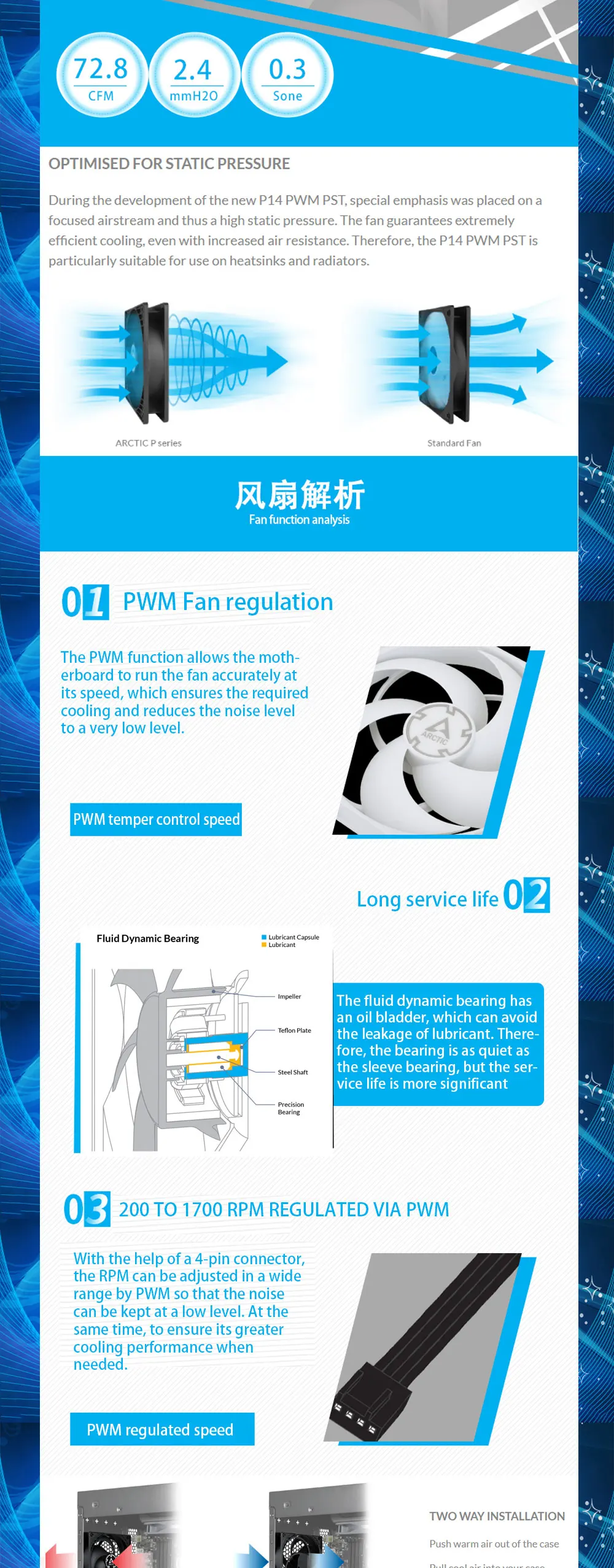ARCTIC P14 PWM белый 14 см чехол для компьютера вентилятор 140 мм охлаждающий вентилятор CPU 4 Pin ШИМ контроль температуры FDB
