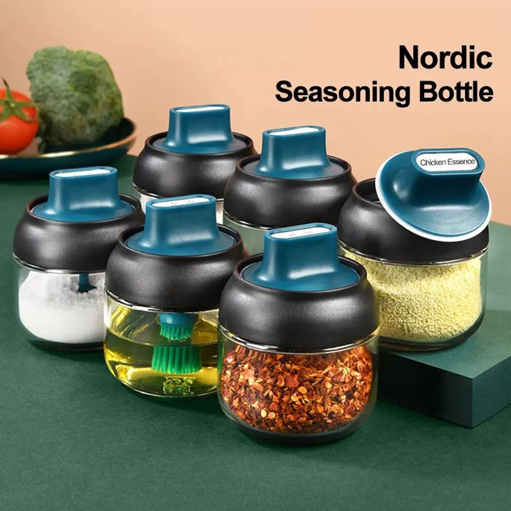 280 мл кухонные стеклянные банки для специй с крышкой, Солонка и перечница с дырочками сверху трав, соевых масло для соуса бутылок, кухонный инструмент для приправ с этикеточной бумагой
