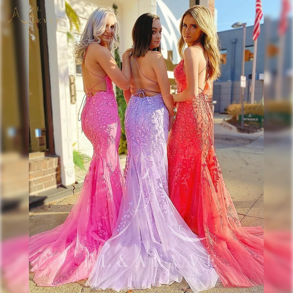 Женское вечернее платье-русалка, длинное розовое платье с аппликаци...