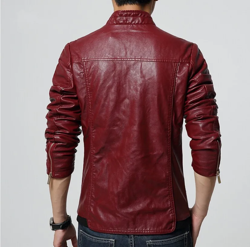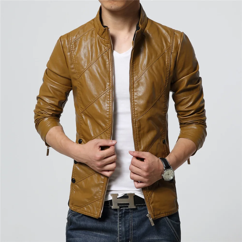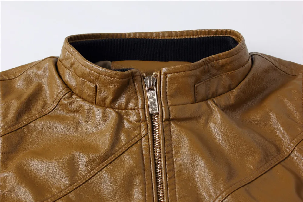 Куртка мужская кожаная из искусственной кожи, приталенная байкерская куртка с воротником-стойкой, однотонная верхняя одежда, размеры 5