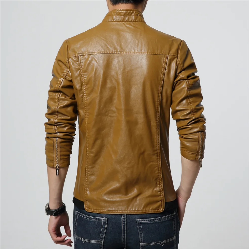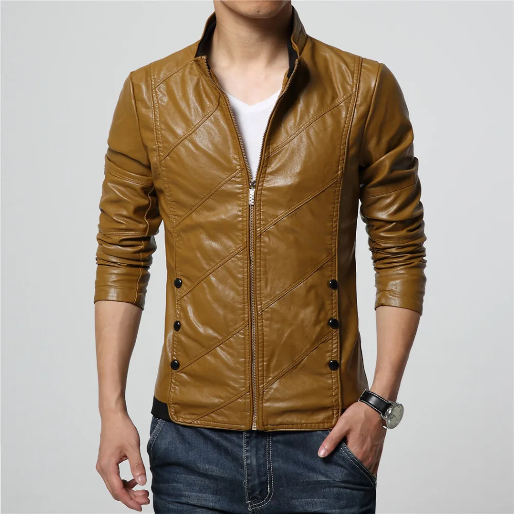 Осенне-зимняя новая мужская приталенная кожаная куртка с воротником...