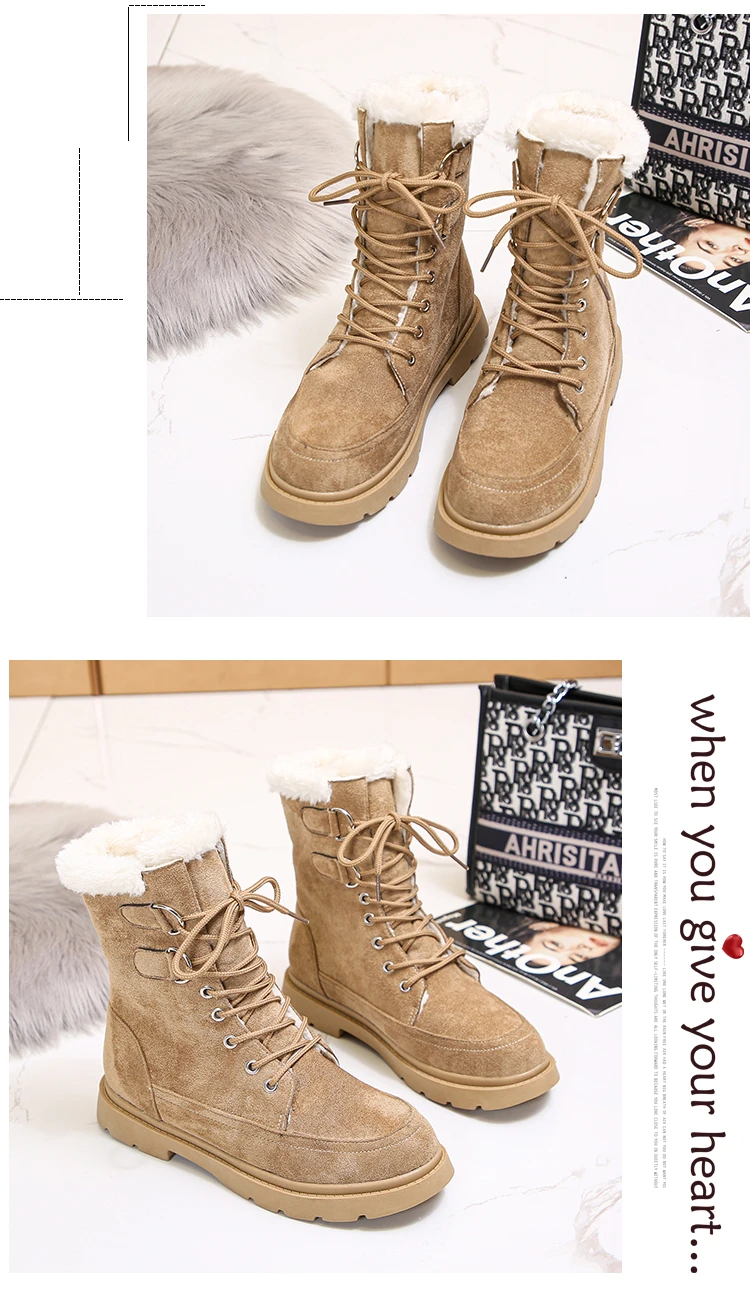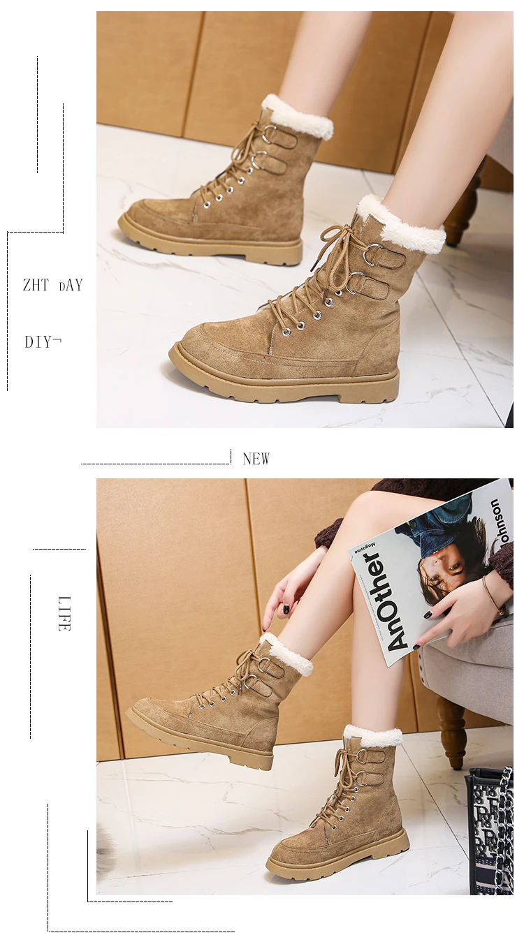 Зимние Замшевые Зимние сапоги; Женская износостойкая обувь на платформе; 2021 г.; Модная удобная теплая хлопковая женская обувь; Зимняя нескользящая обувь; Botas Mujer