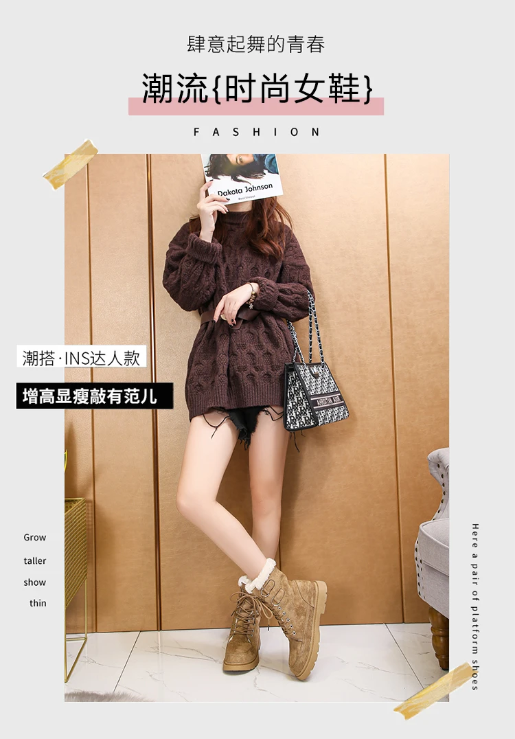Pltformженские ботинки; Теплая короткая плюшевая Повседневная обувь...