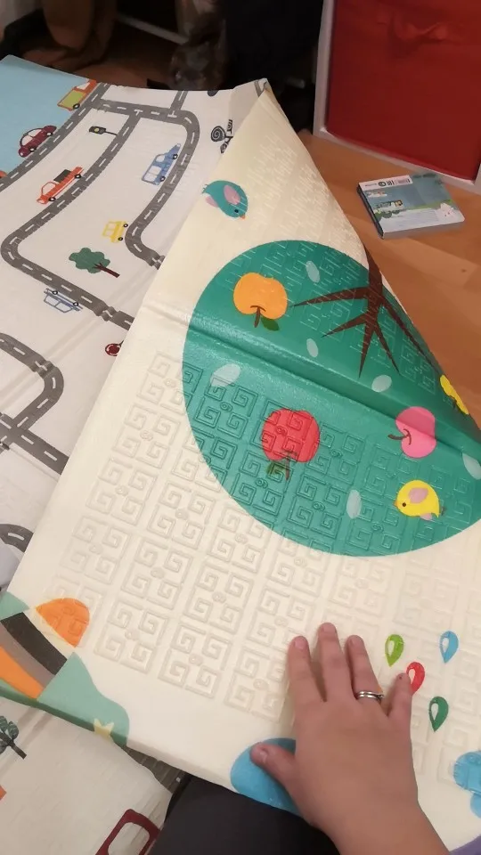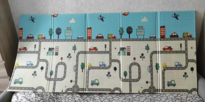 Отличный коврик , достаточно плотный отлично сохраняет тепло , у нас загородный дом и пол не очень тёплый -коврик спасение для ползания
