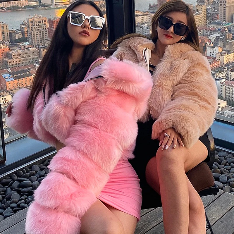 S-4XL модное осенне-зимнее высококачественное пальто из искусственного меха лисы, розовое пальто с длинными рукавами и капюшоном, тонкие короткие куртки, женское меховое пальто