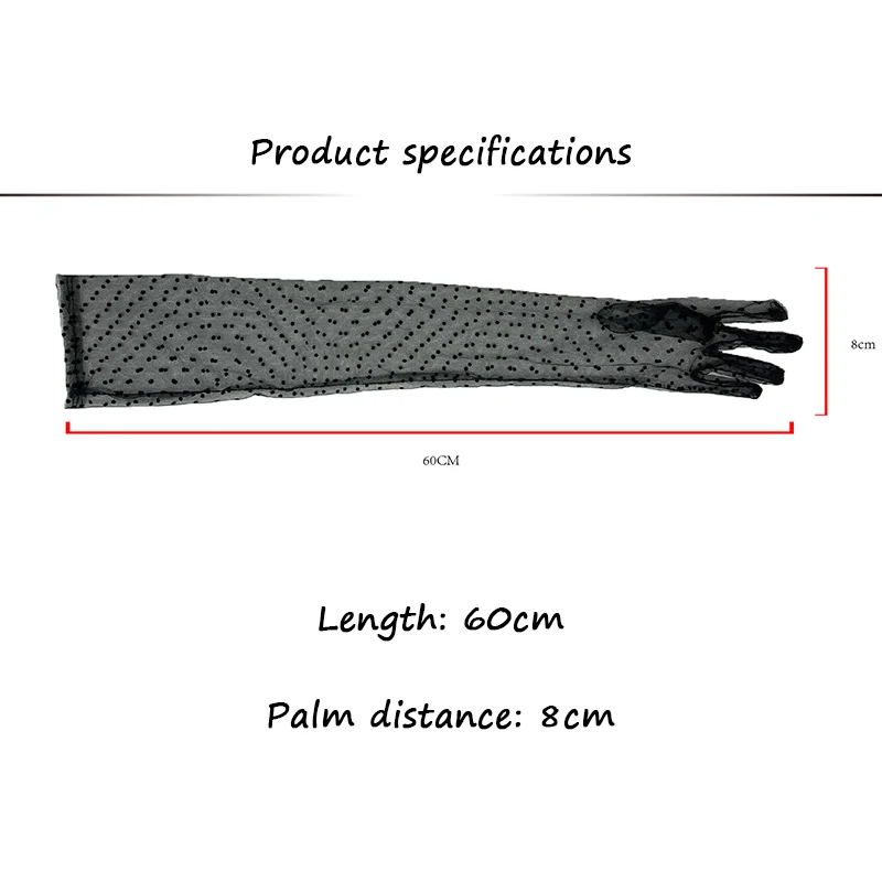 Длинные кружевные перчатки в горошек, женские тюлевые сетчатые черн...