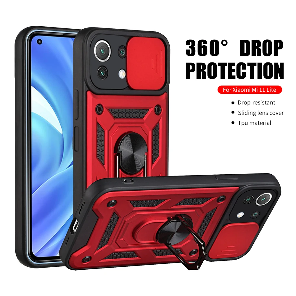 Защитный чехол для камеры с нажимом для Xiaomi Mi 11 Lite 5G NE держатель для кольца на палец металлический чехол для Mi 11 Lite 11 Light Fundas
