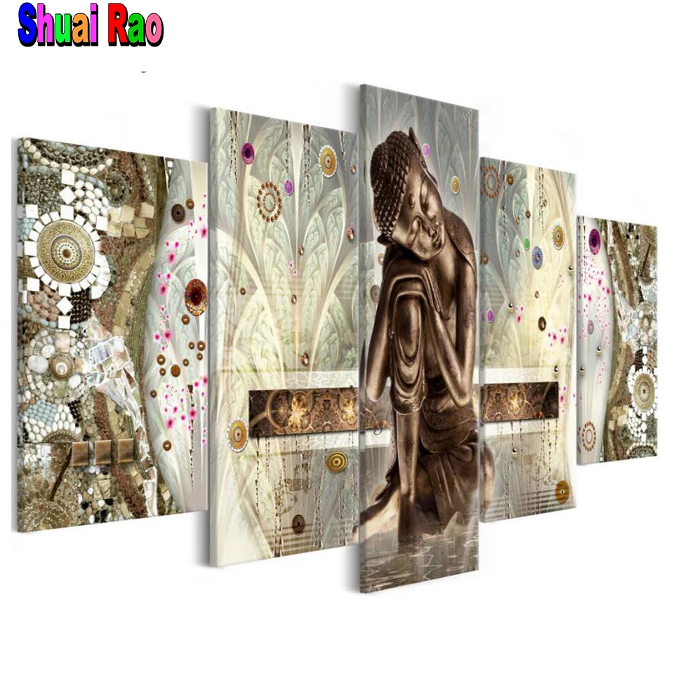 5 панель Gustav Климт абстрактное дерево 5D Сделай Сам Алмазная картина стежок мозаика полный набор Алмазная вышивка с Буддой домашний декор