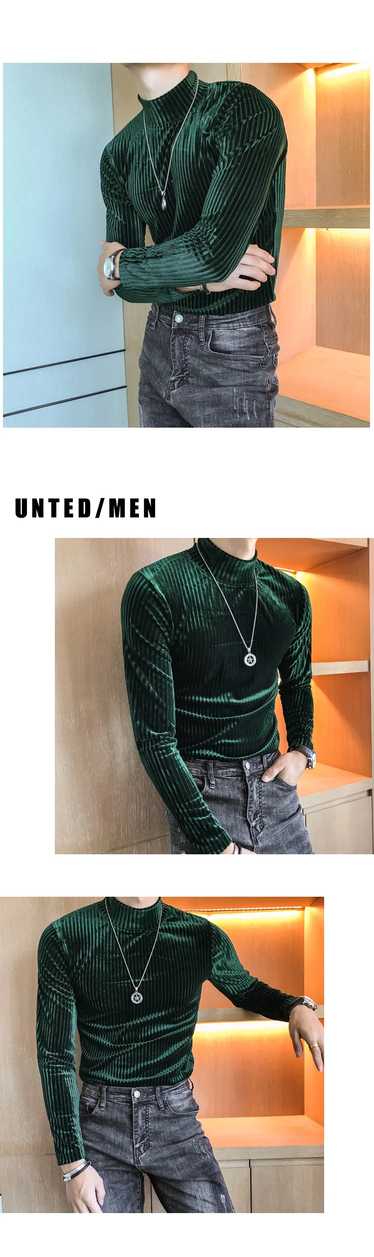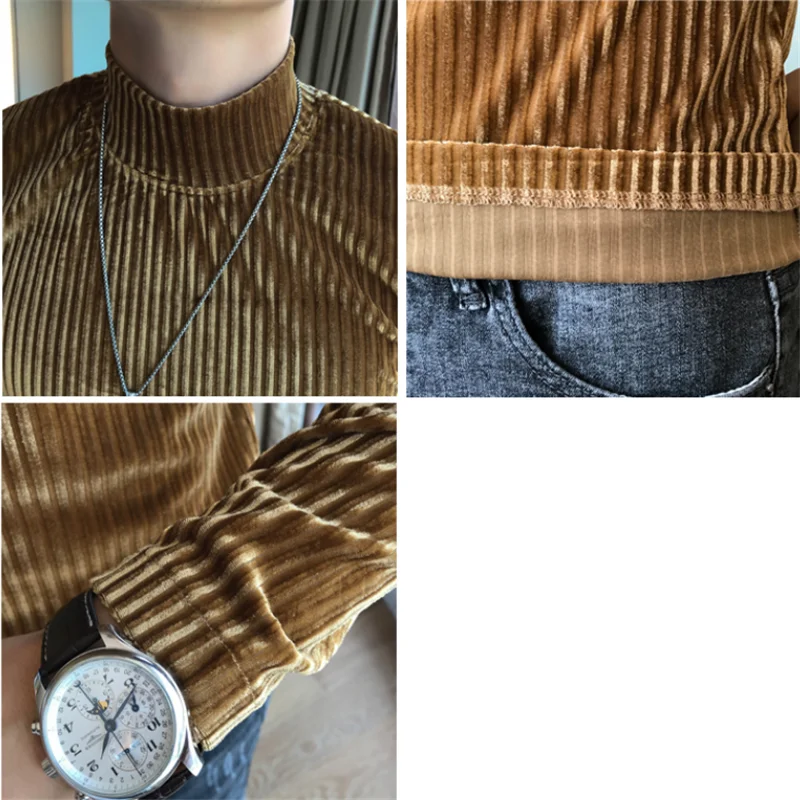 Мужская Вельветовая футболка, Повседневная облегающая футболка в полоску с высоким воротником, Клубная одежда с длинным рукавом, Осень-зима 2021