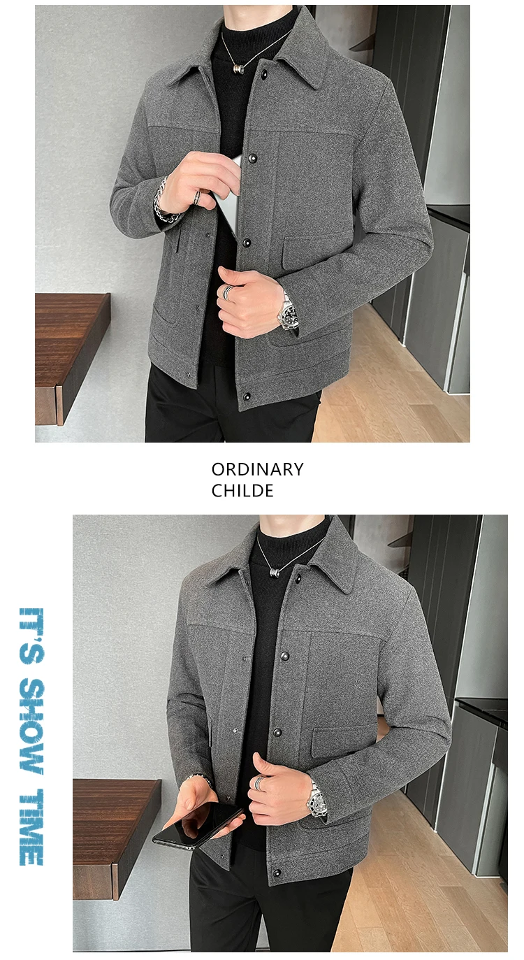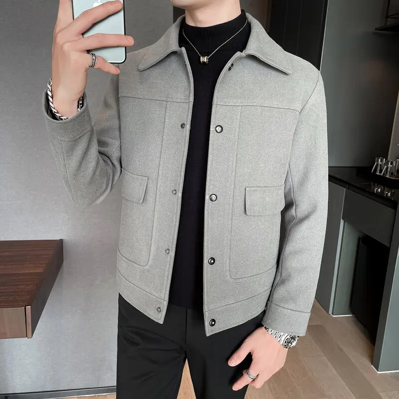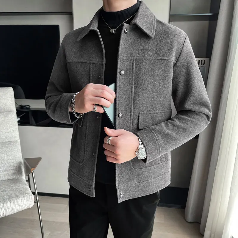 Разборная мужская зимняя куртка 2021, повседневная приталенная шерстяная куртка с отложным воротником, высококачественные шерстяные куртки для мужчин