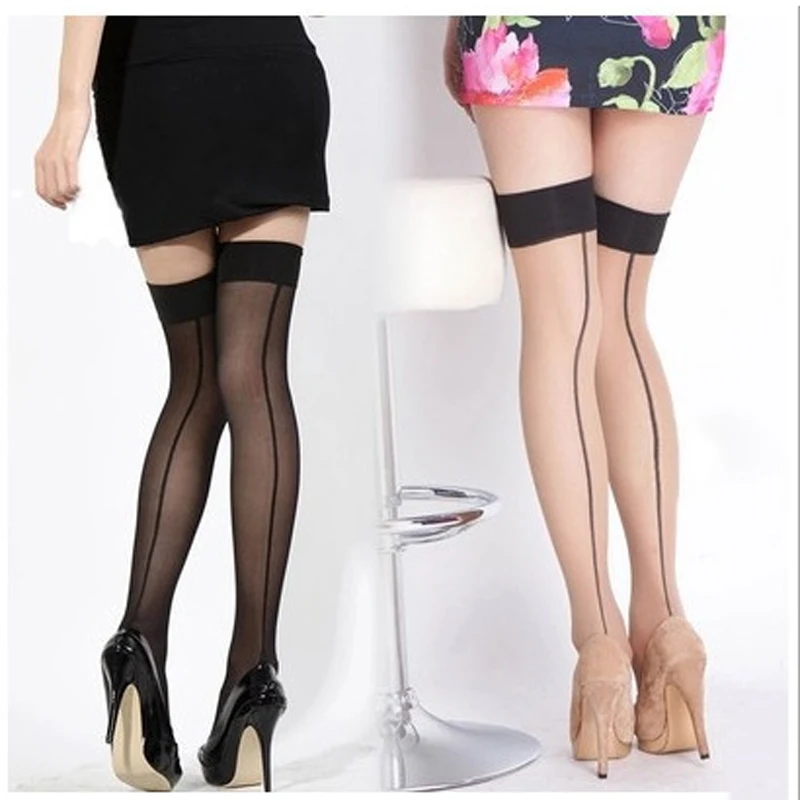 Дамские женские чулки до бедра с вертикальной линией сзади, сексуальные длинные чулки для девушек с черной кожей, Летний стиль
