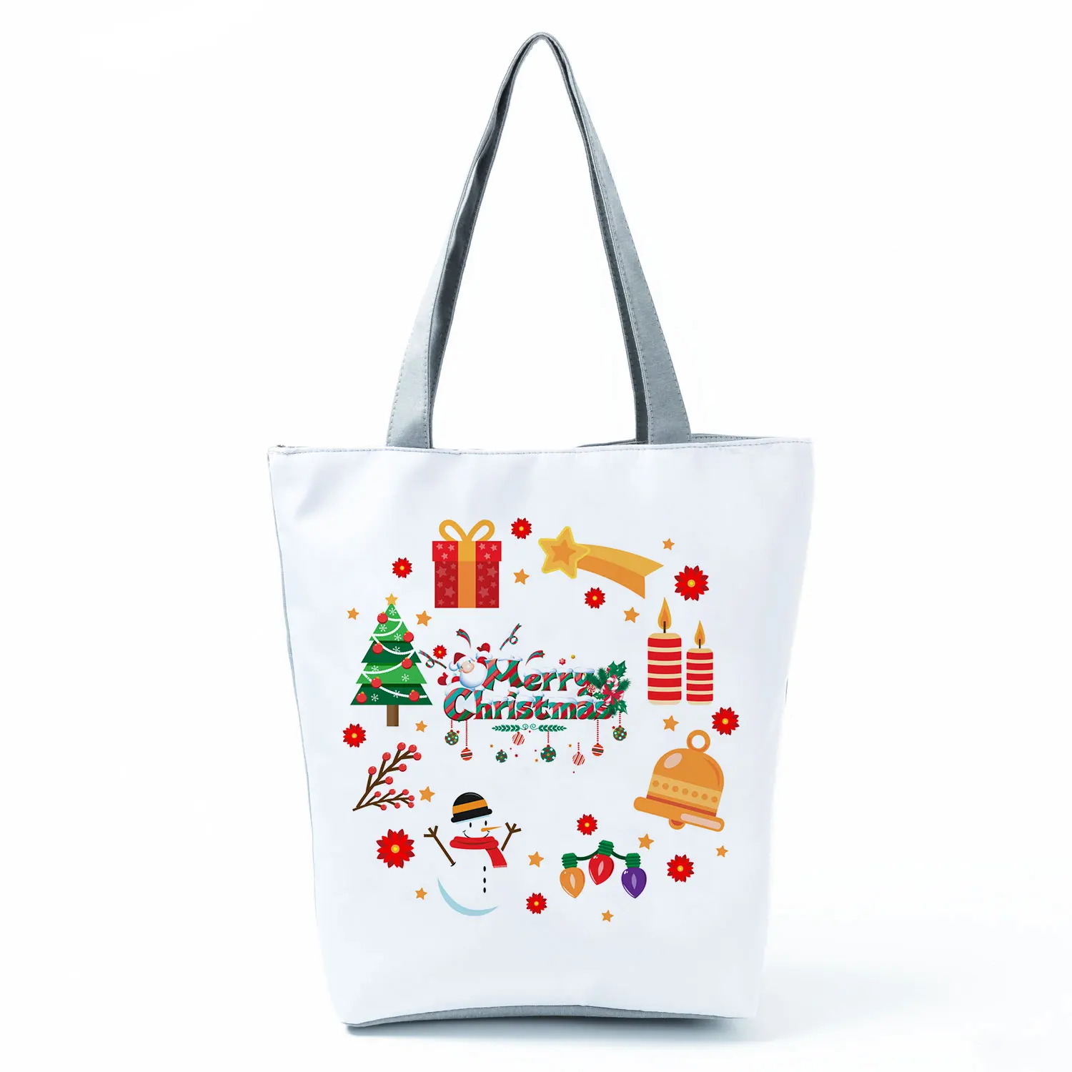Рождественский Санта Клаус, женская сумка, универсальная сумка на плечо, школьная сумка, женская сумка, лучший подарок для детей, семейная Эко сумка для покупок