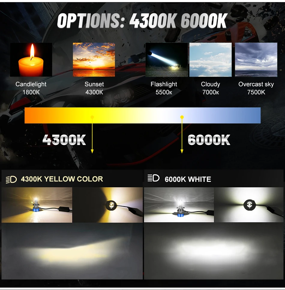 Светодиодные фары H7 s K4S K4C 4300K 6000K 25000LM H1 H8 9012 HIR2 ...