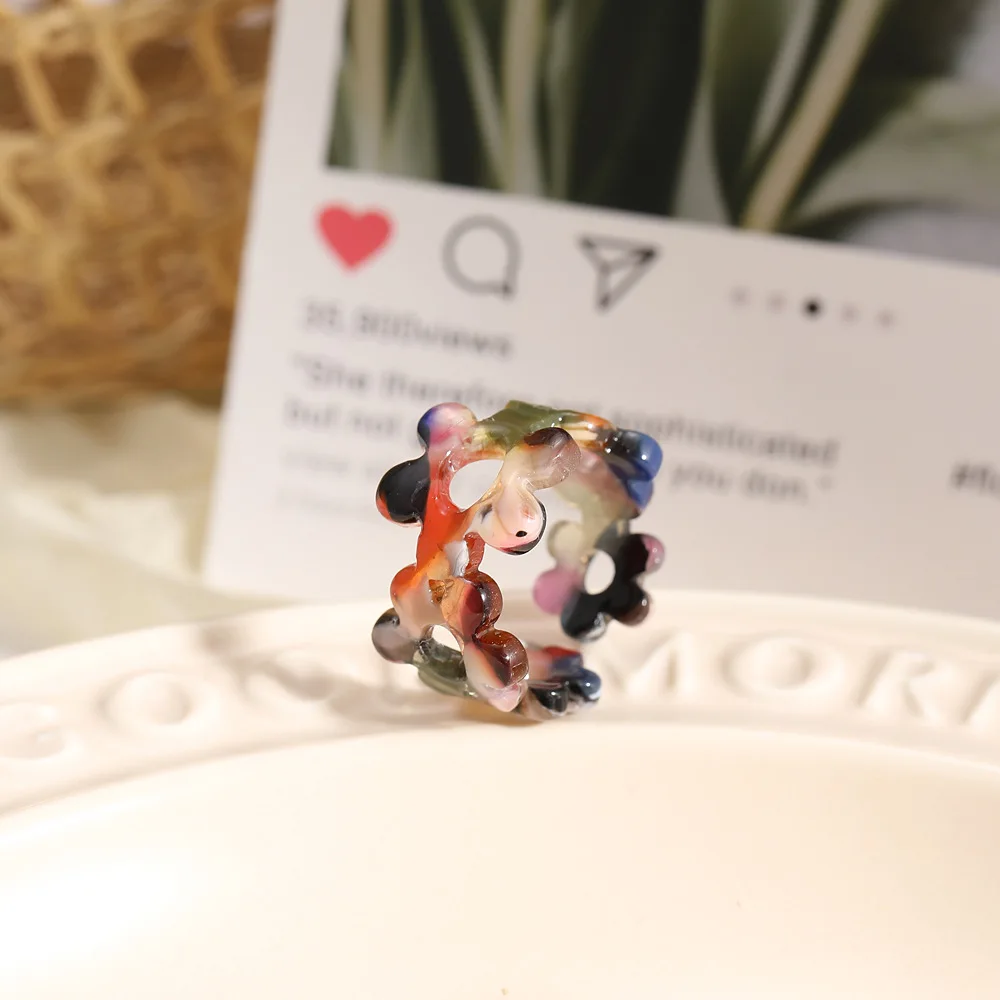 Новинка 2021, милое кольцо в виде цветка, акриловые кольца из смолы...
