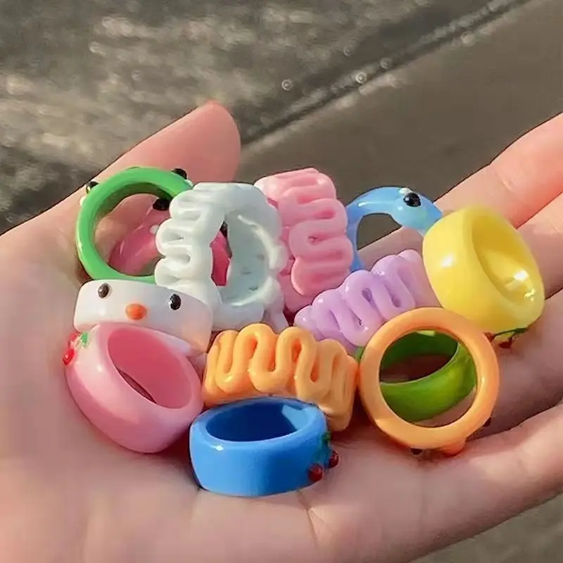 Акриловое кольцо в виде лягушки Полимерная глина Смола Кольца для ж...