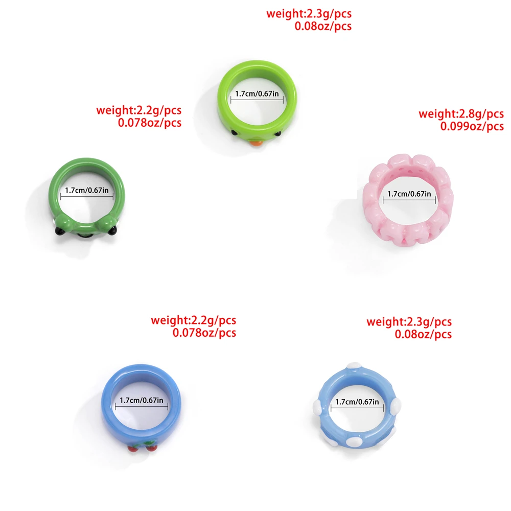 Акриловое кольцо лягушка Полимерная глина Смола Кольца для девочек ...