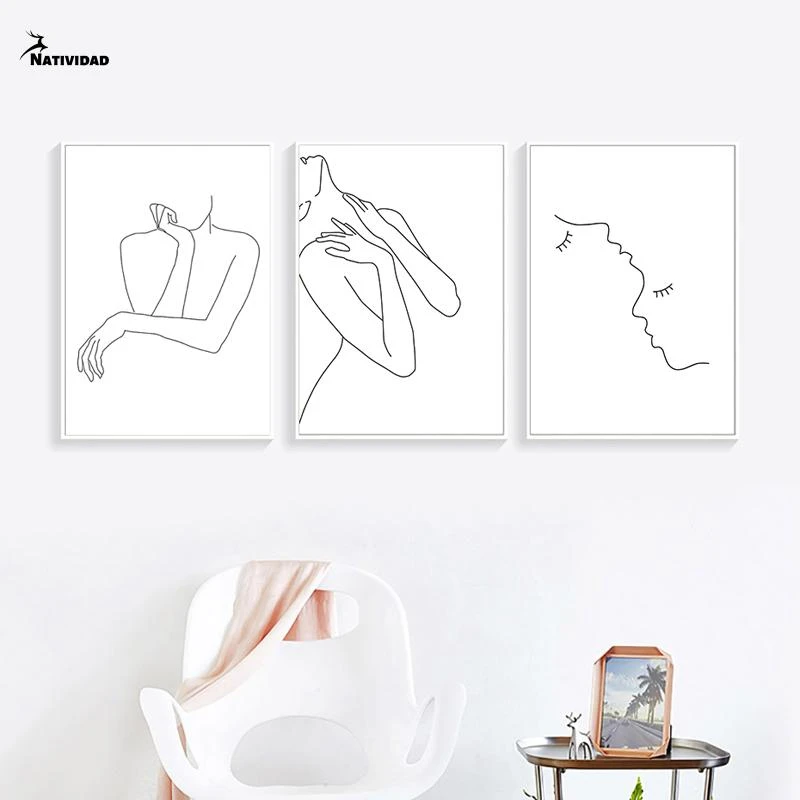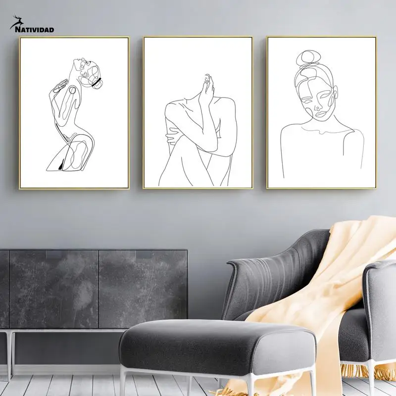 Абстрактная черная линия, фигурка плаката, сексуальная женская рука, цветок, линия, художественный принт на холсте, черная белая картина для декора гостиной
