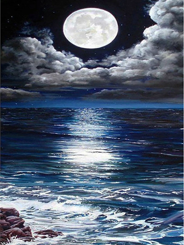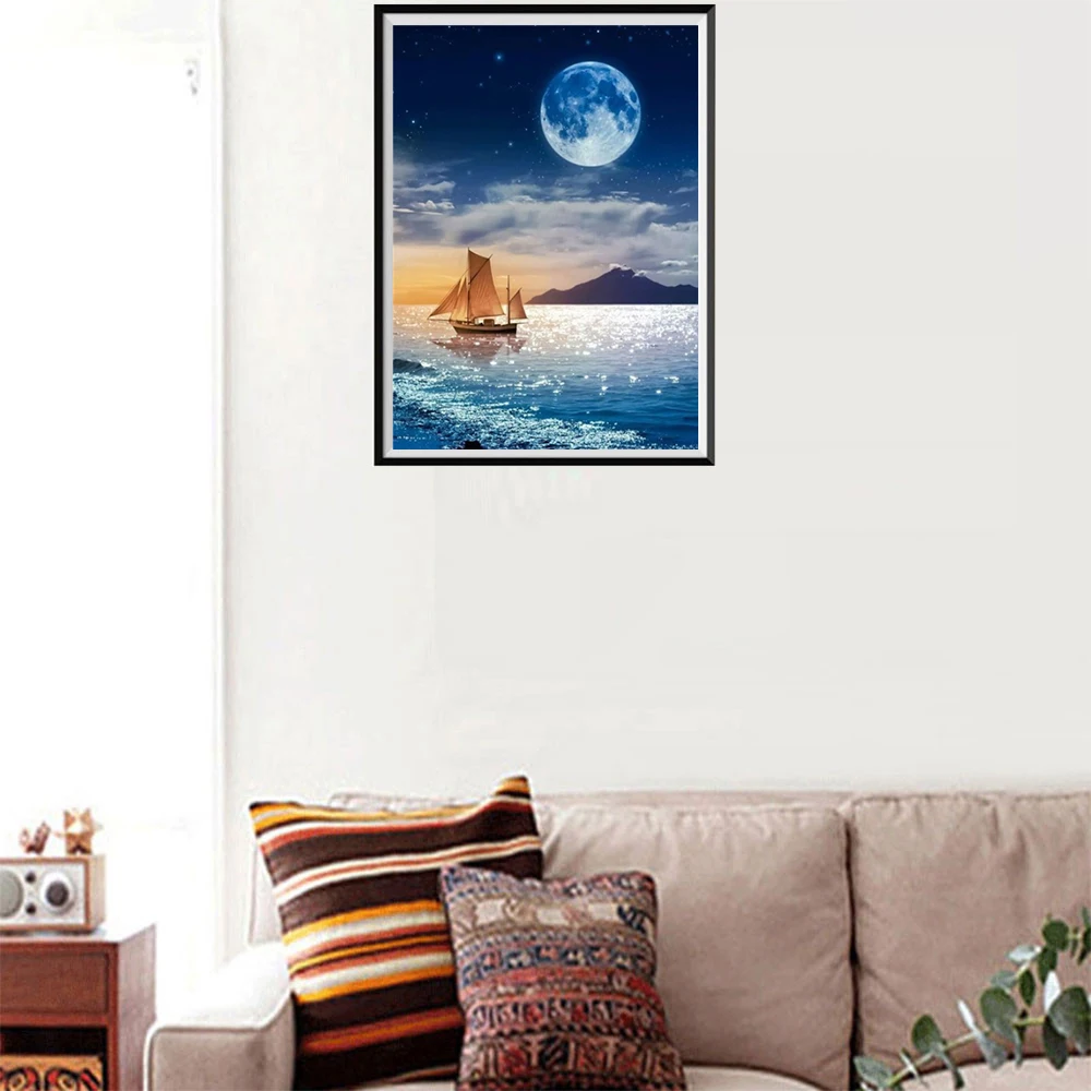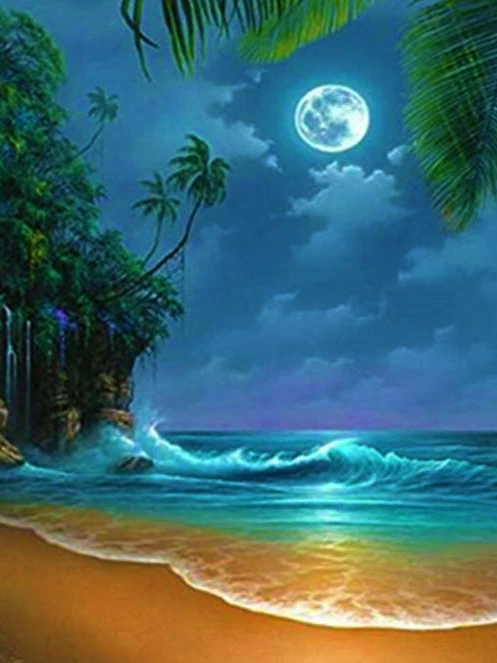 Алмазная живопись 5d "сделай сам", ночной пляж, вышивка, искусство,...