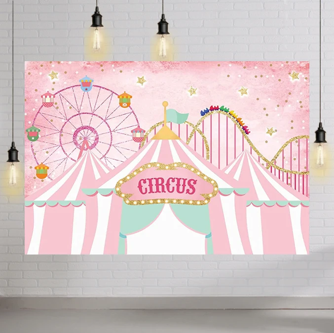Розовый фон для фотосъемки с блестящими звездами и украшением на день рождения
