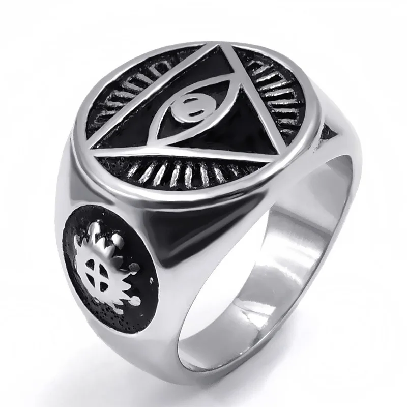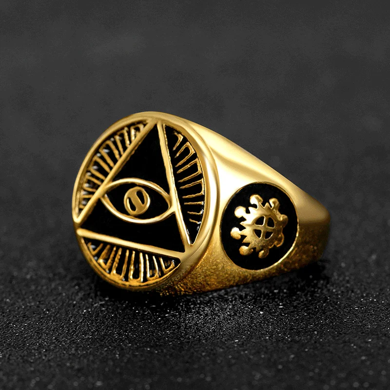 Классическое Винтажное кольцо в виде древнего египетского треугольника с узором в виде глаза Орта мужской фотоподарок