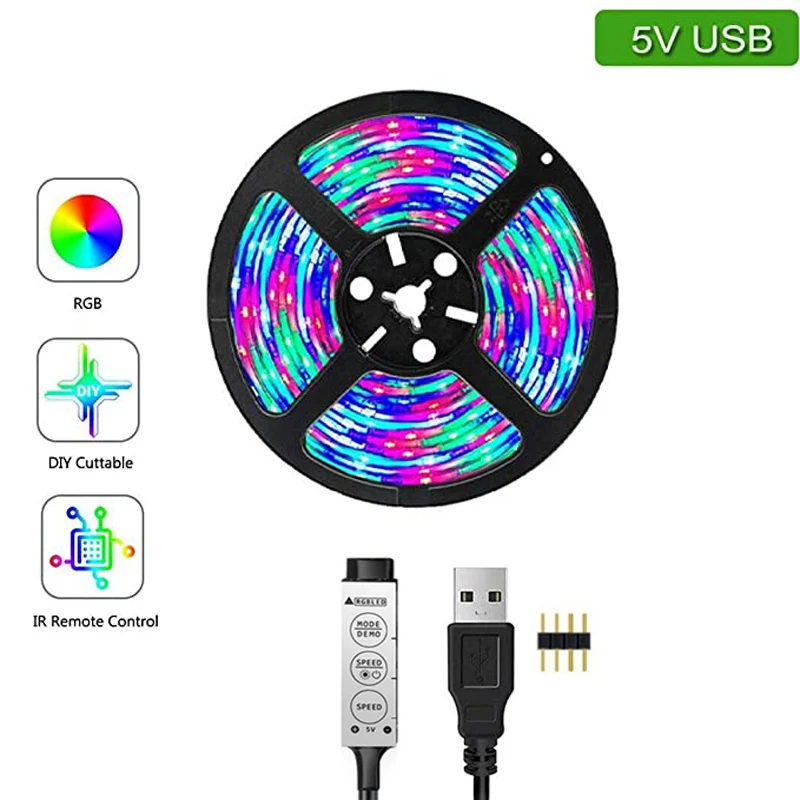5 в постоянного тока USB светодиодный ленточный светильник, гибкий RGB 2835 0,5 м-5 м декоративный светильник, ленточная лента, Светодиодная лента, лампа, вечерние лампы для спальни, ТВ, подсветка, светильник