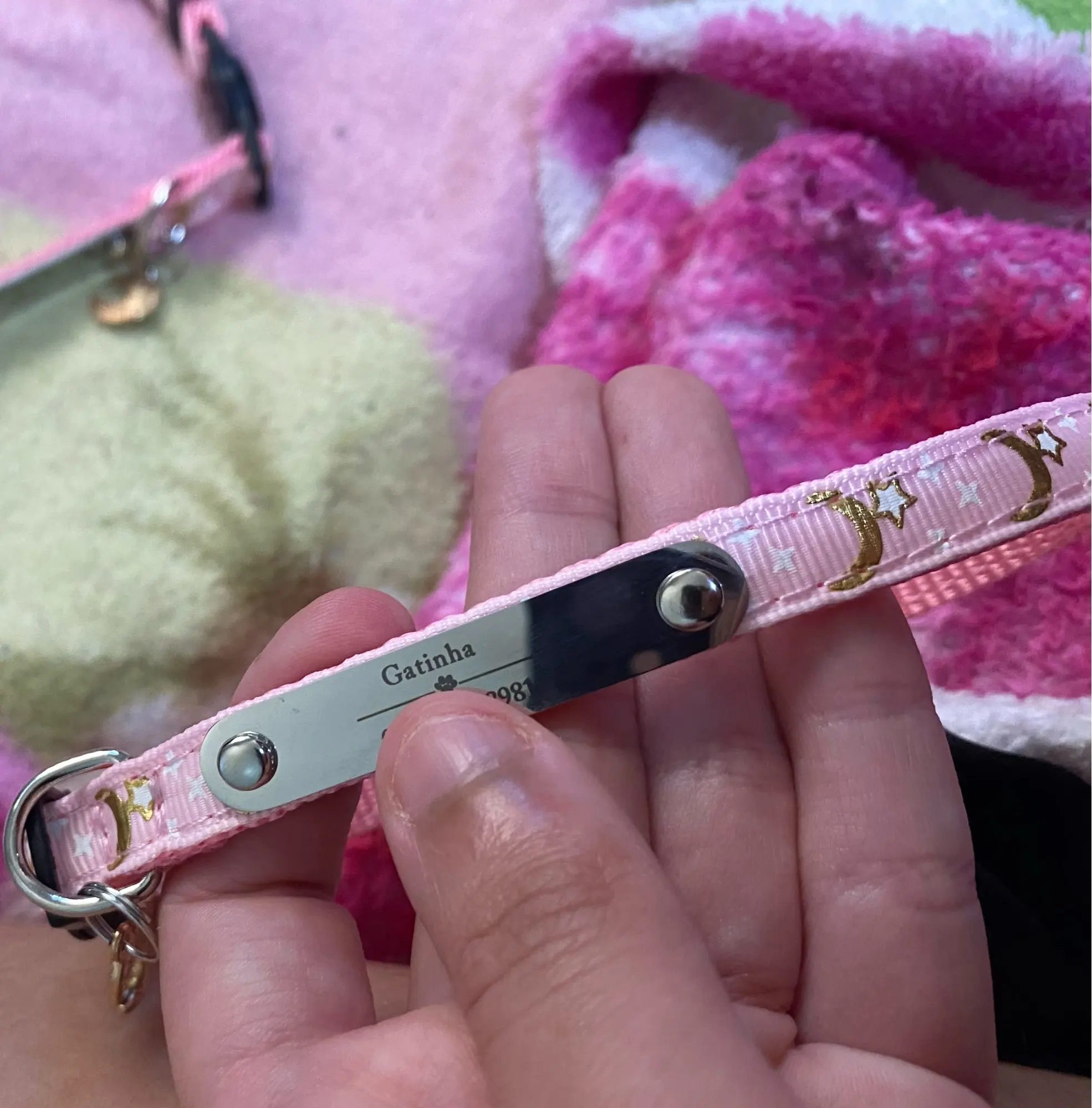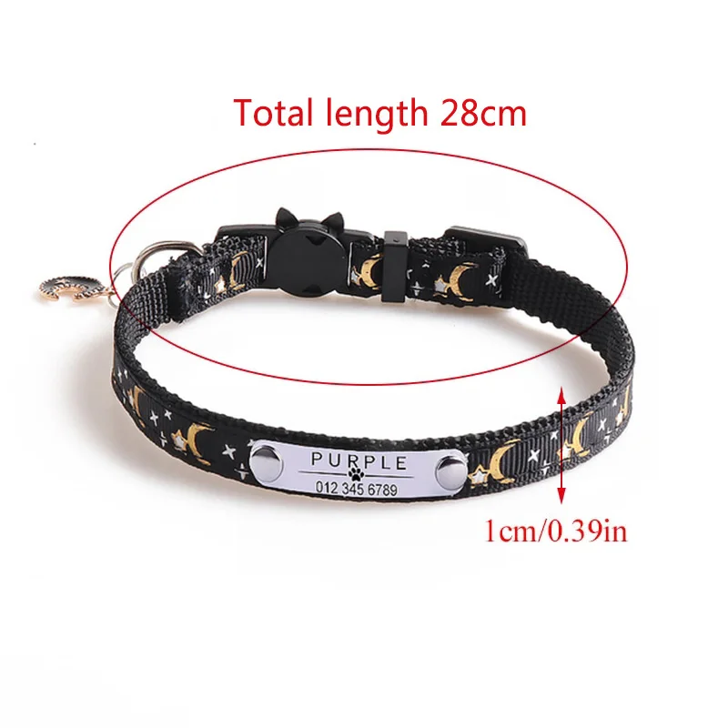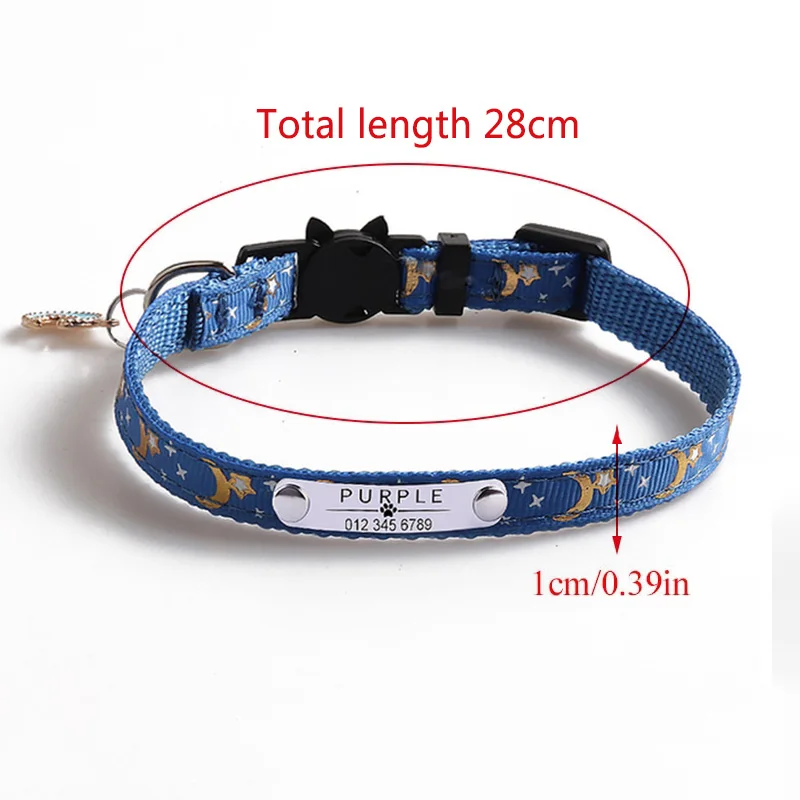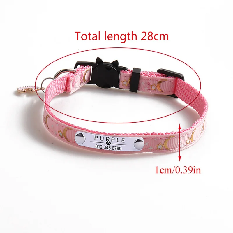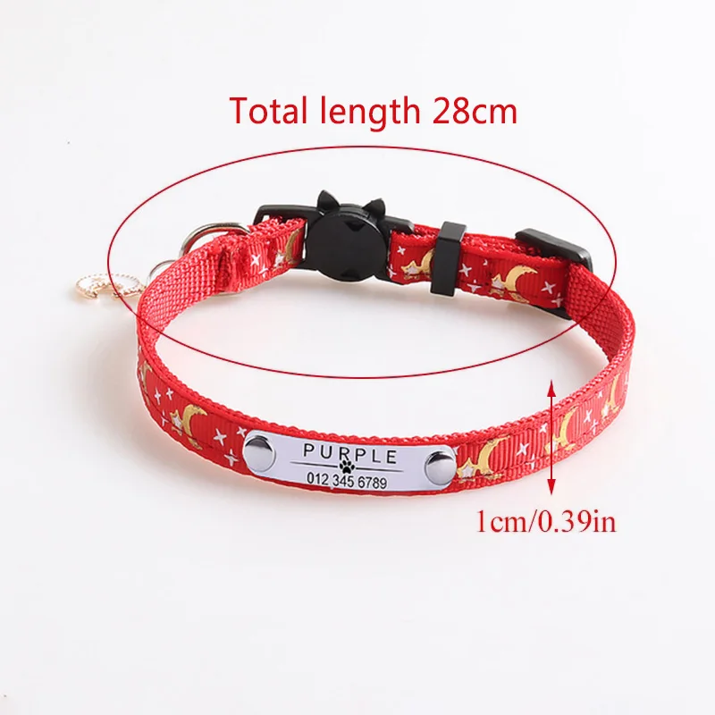 Милые ошейники для кошек с подвеской в виде Луны и звезды, ожерельльлье с котенком, ошейники для кошек и кроликов с надписью и колокольчиками