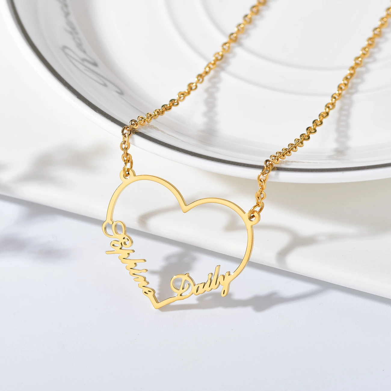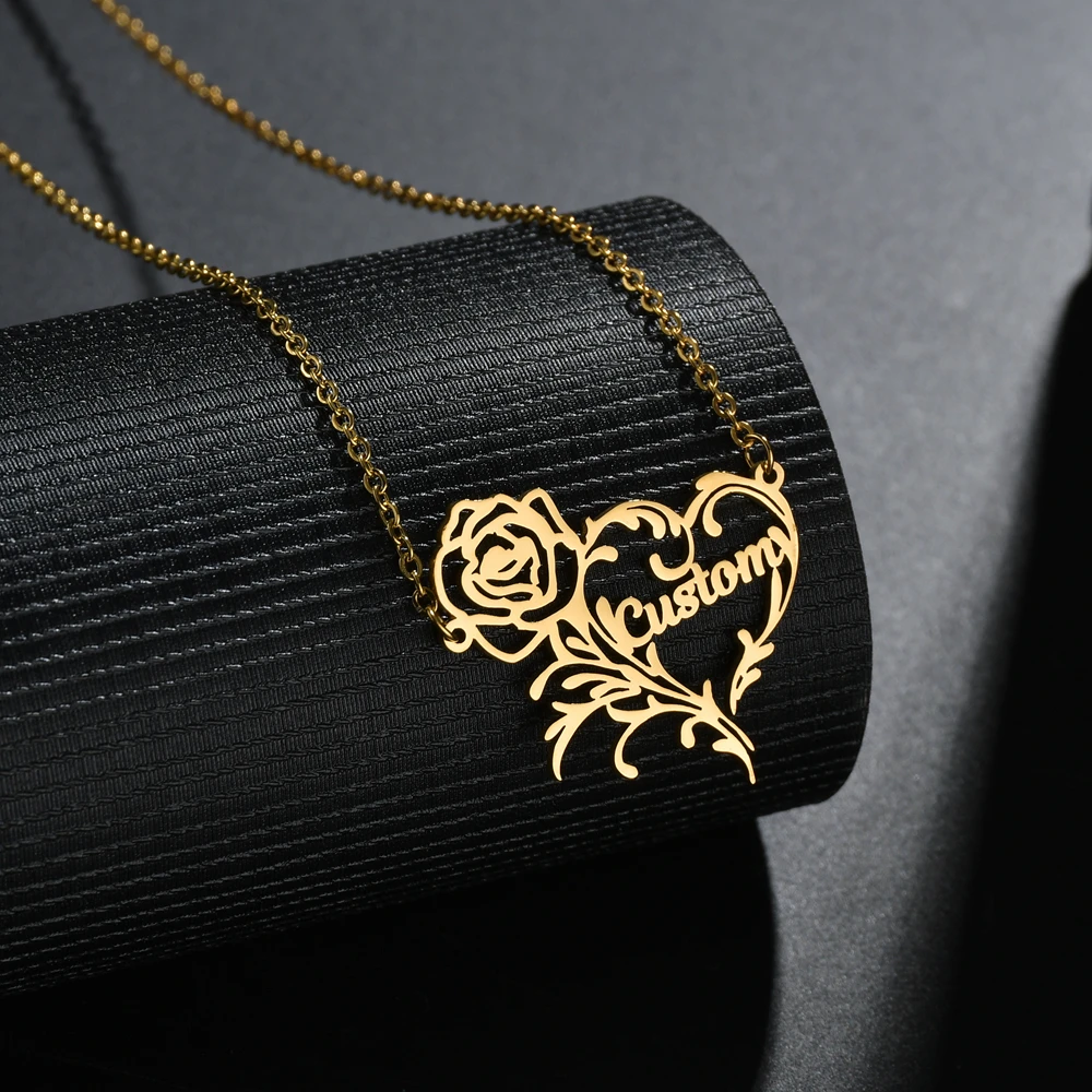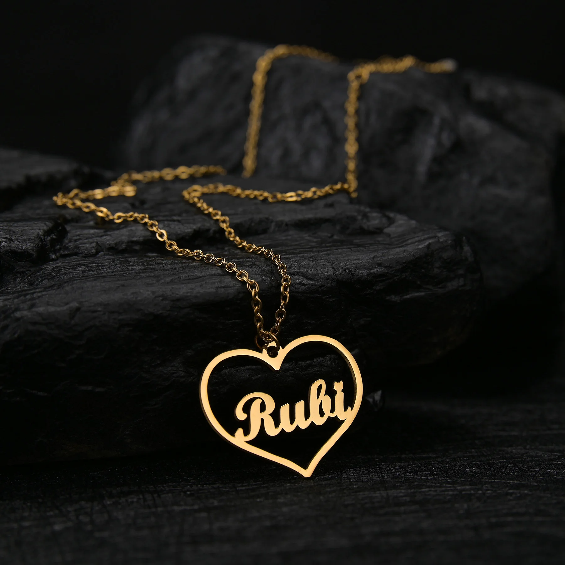 Ожерелье с именем на заказ, персонализированное модное ожерелье из нержавеющей стали с кружевной подвеской в виде сердца и букв для женщин, ювелирное изделие в подарок
