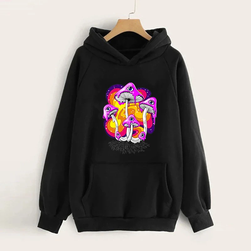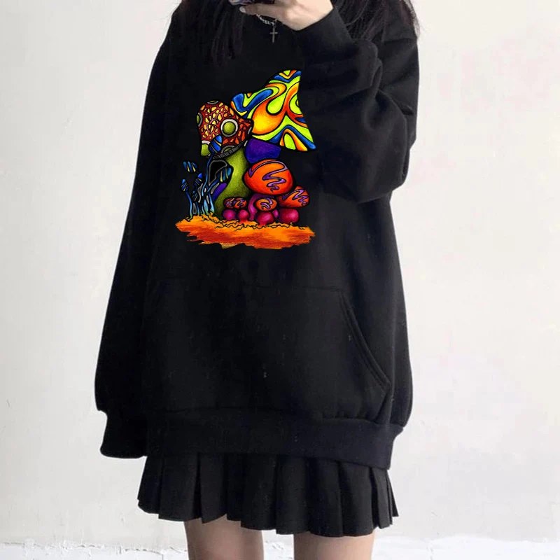 Цветная толстовка с капюшоном в виде грибов Y2K, одежда в стиле KPOP, готика, гранж, винтажная Женская толстовка, милая корейская мода, зимняя Толстовка Оверсайз