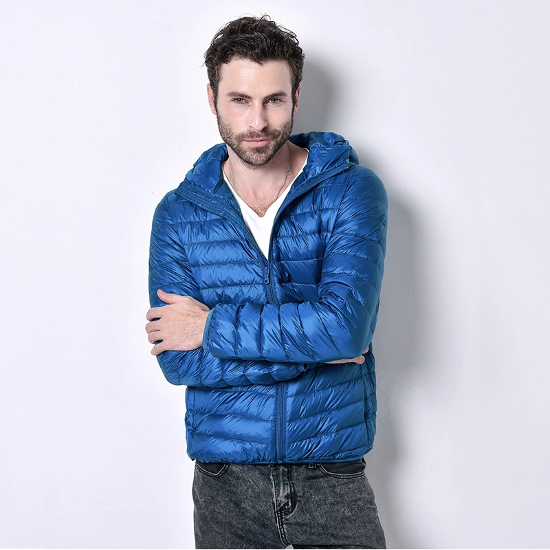 Пуховик мужской с капюшоном, повседневный легкий пуховик на белом у...