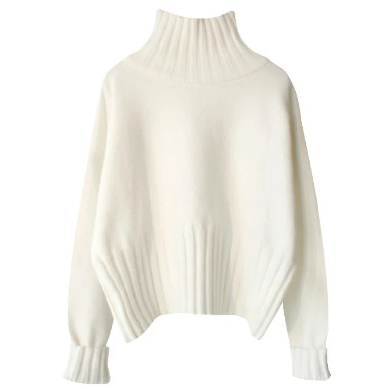 Женский трикотажный свитер-водолазка, мягкий белый или черный пулов...