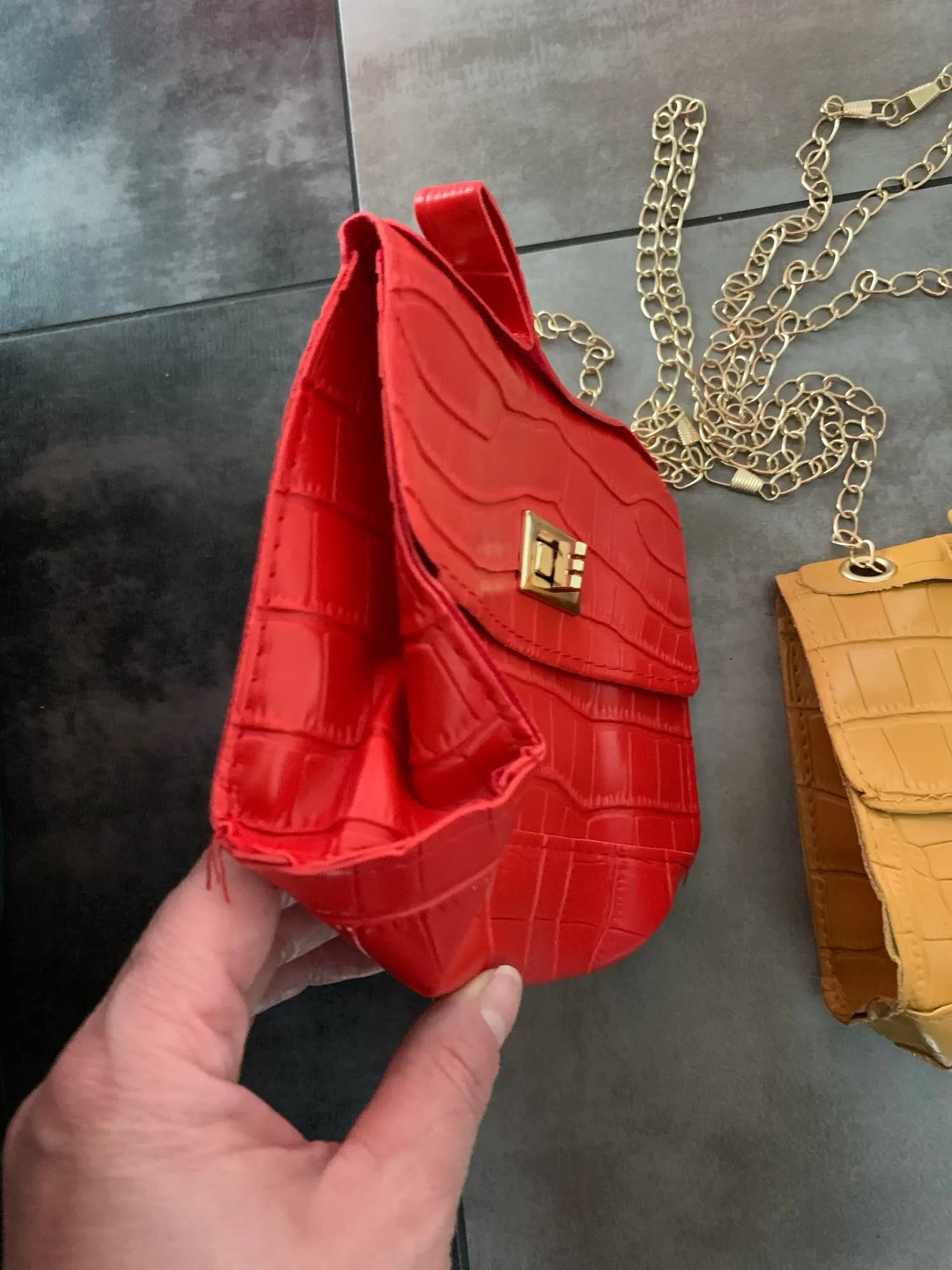 очень маленькая сумочка из дермантинчика-клеенки. немного помята. в живую бы не купила. но! деть сказала, что такие щас модно.
