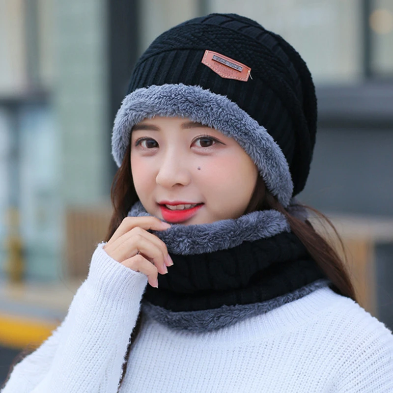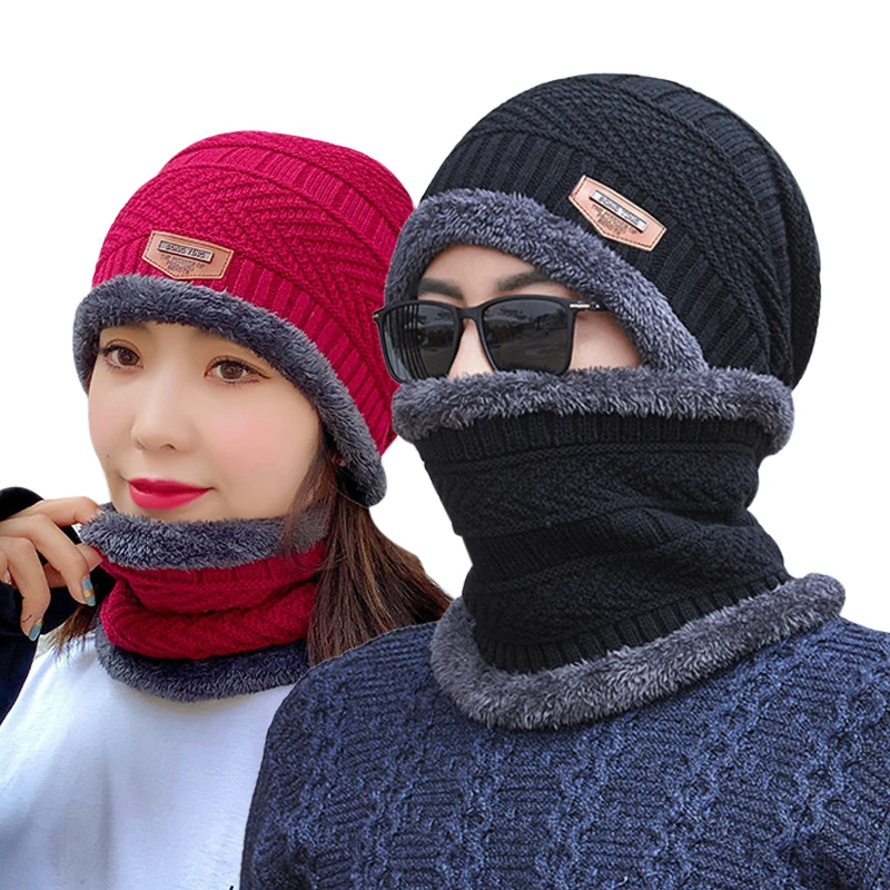 Новый зимний теплый комплект шапка шарф Женская плюшевая бархатная Толстая Женская шапка для лица капюшон мужской уличный шарф для защиты ушей вязаные шапки