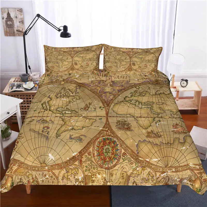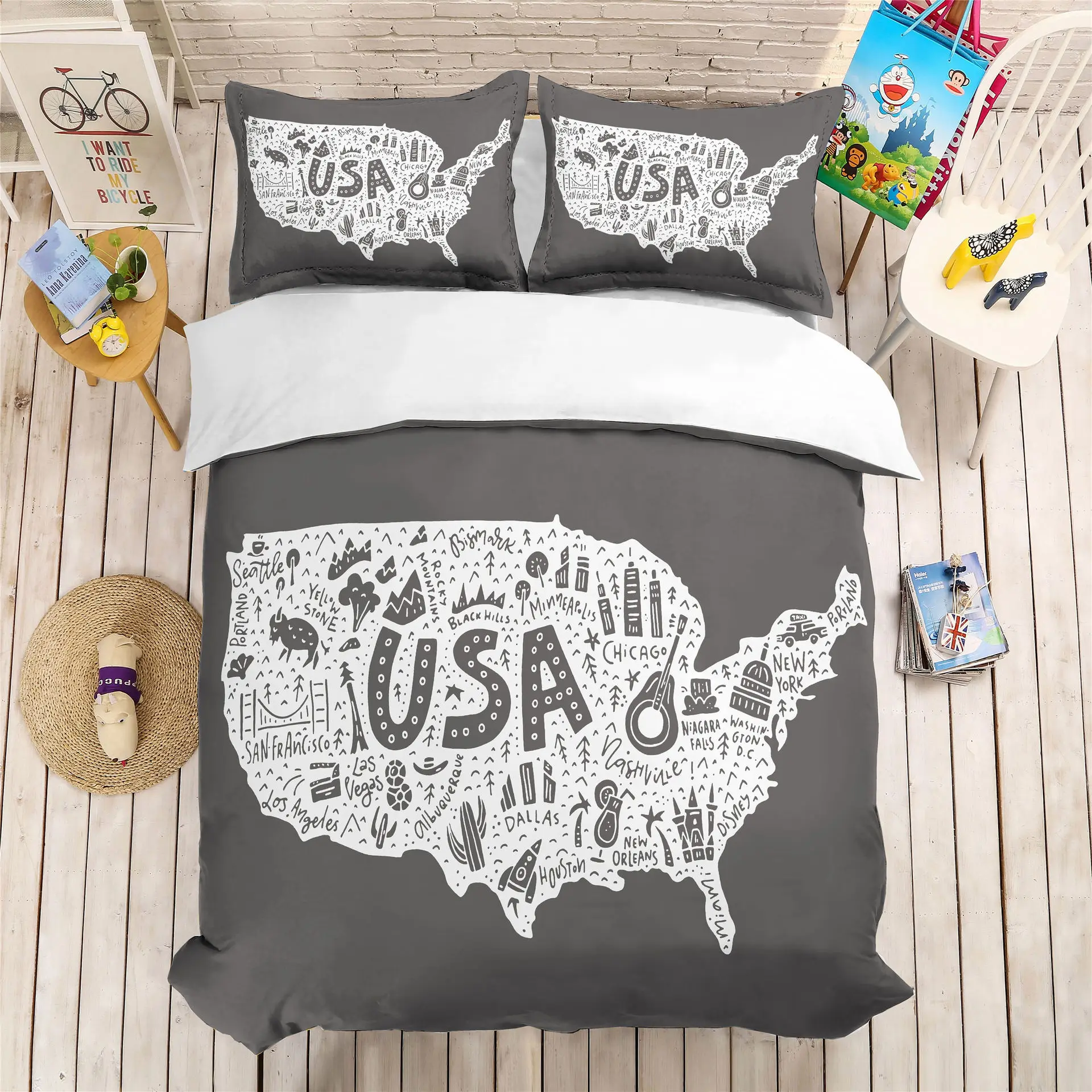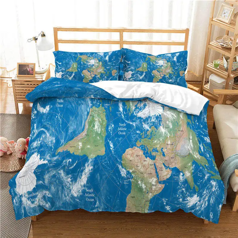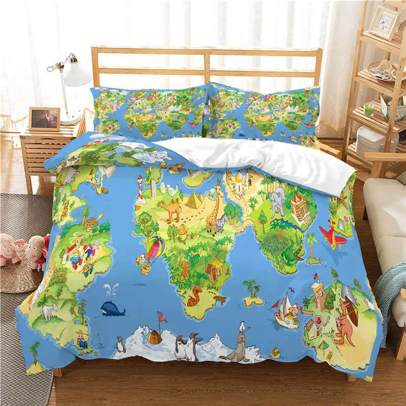 Комплект постельного белья с картой мира, набор постельного белья для односпальной и двуспальной кровати, с 3D принтом, большие размеры, Aldult, для детской спальни