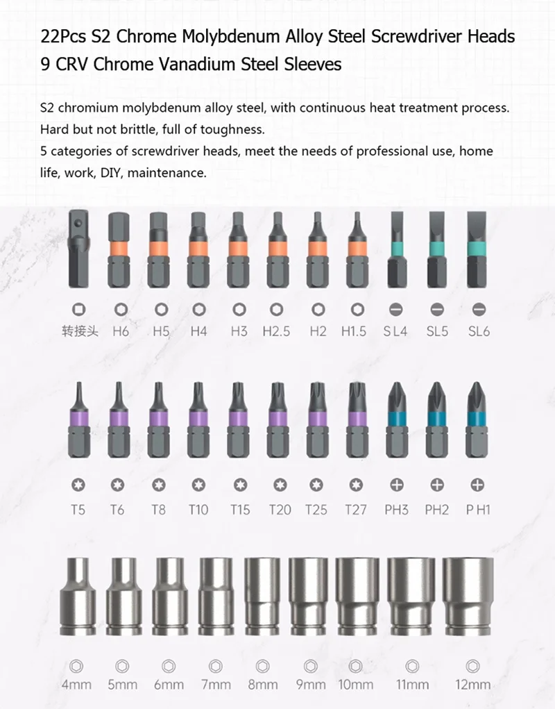 ▪5 категорий головок отверток, удовлетворяют потребности профессионального использования, домашней жизни, работы, DIY, технического обслуживания.
