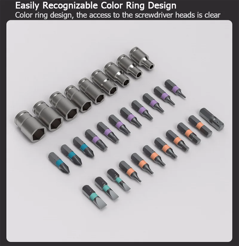▪Легко узнаваемый дизайн цветного кольца, доступ к головкам отвертки ясен