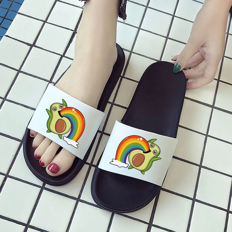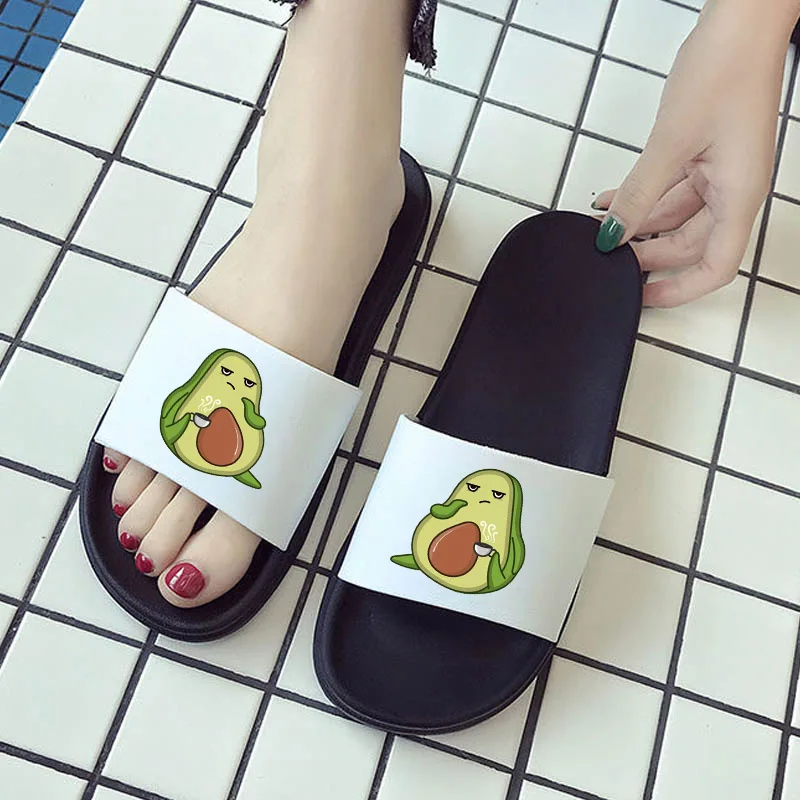 Женские шлепанцы с авокадо, удобные домашние сандалии, пляжные тапочки, сланцы, обувь для дома