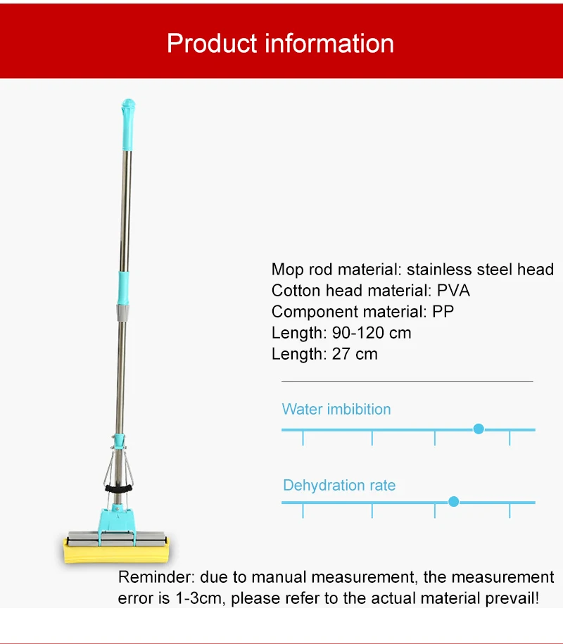 Телескопическая длина: 90-120 смРазмер шины: 27 смМатериал швабры: сверхтонкое волокноКоррозионная стойкость: 7,0-7,9 уровняМатериал швабры: нержавеющая стальВес швабры: менее 10 кгУровень обезвоживания: 80%-90%Скорость размягчения резиновой хлопковой головки: 30 секунд (включительно) -60 секунд (не входит в комплект)Метод сжатия воды: Тип ролика