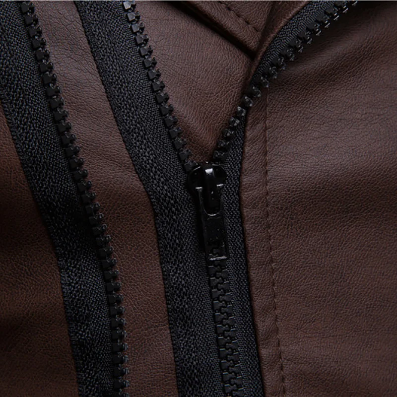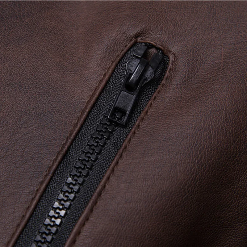 Мужская кожаная куртка на молнии, в полоску, с защитой от ветра